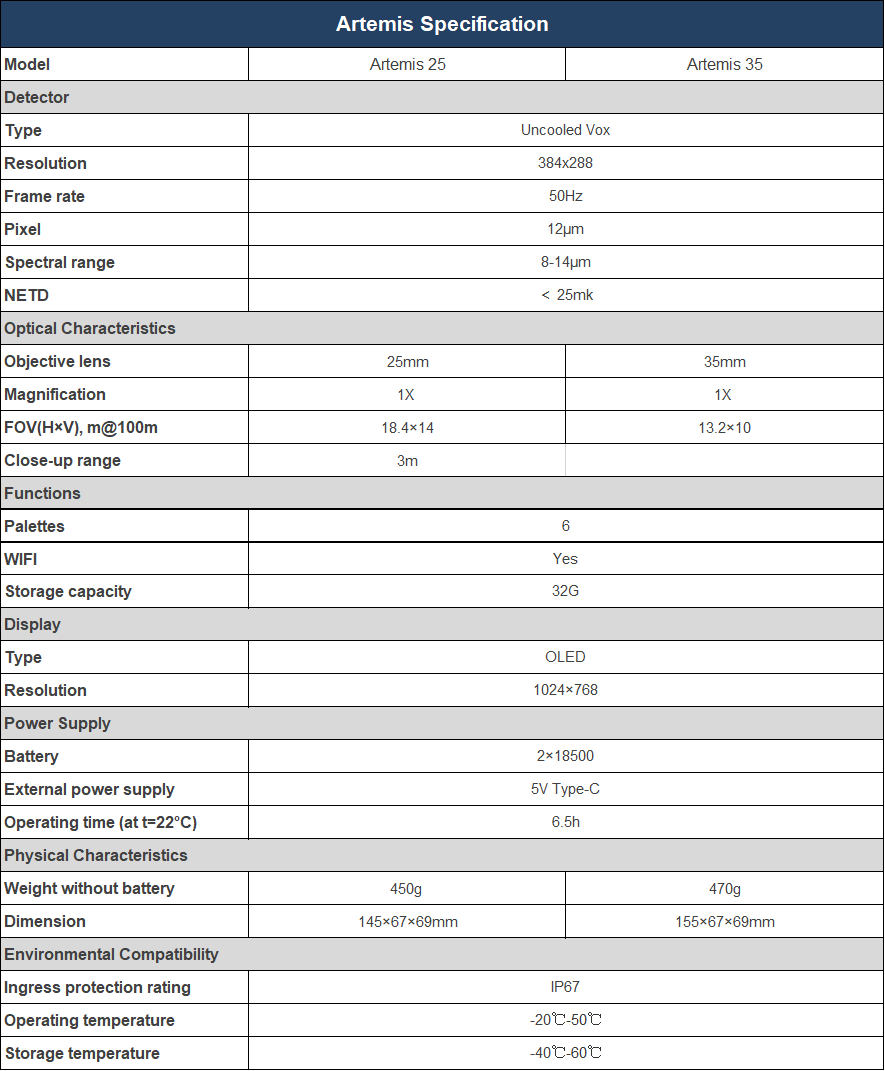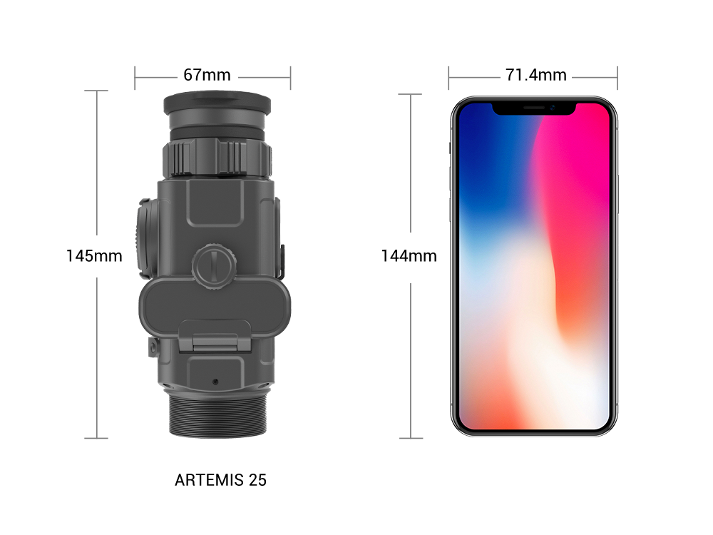 The 12um thermal imaging sensor with less than 25mK NETD offers Sharp, richly contrasted images while retaining the accuracy of the day scope. Compared with 17um sensor, it has a lower FOV, looks sharper and more detailed enabling better object identification capabilities.