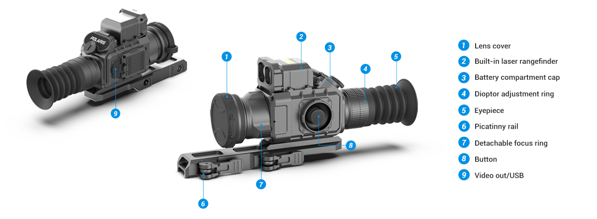 Polaris is capable of accurately measuring distance to objects up to 1000 meters away. The Integrated, precise laser rangefinder provides three modes -single time measurement mode, scanning mode and high-humidity mode.
